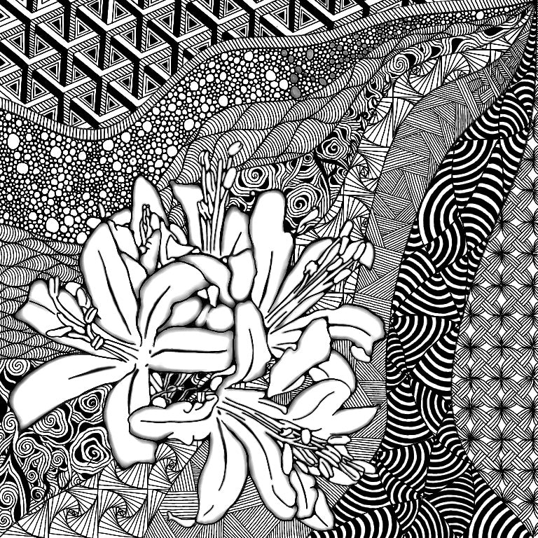 1つ1つ手で線を描き、ゼンタグルの中には規律的なものと無秩序に並ぶものを無造作に配置し、入り乱れる世情の中にあるルールを表しました。
