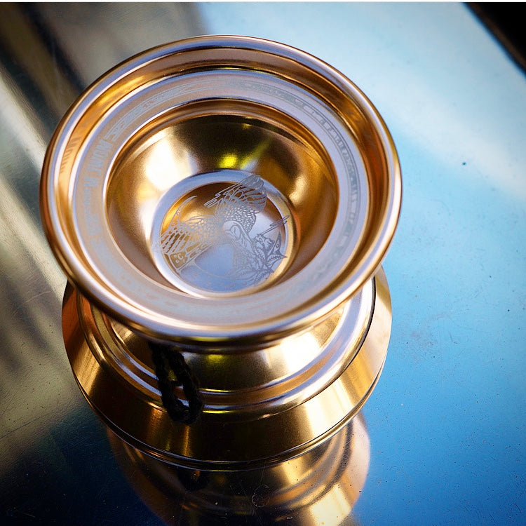 MRLで独自のアルマイト技術を発揮した有限会社DENKEN(敬称略)によって作られたこのゴールドは、DENKENが試行錯誤と調合を重ねて作った独自のカラーとなっており、唯一無二のカラーを持った美しいヨーヨーを完成させることができました。